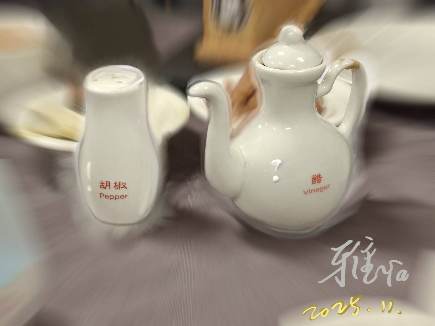 桌上被擺放著的醋罐、胡椒,一直靜靜地呼吸,沒有吵鬧這個世界的那種靜靜。
