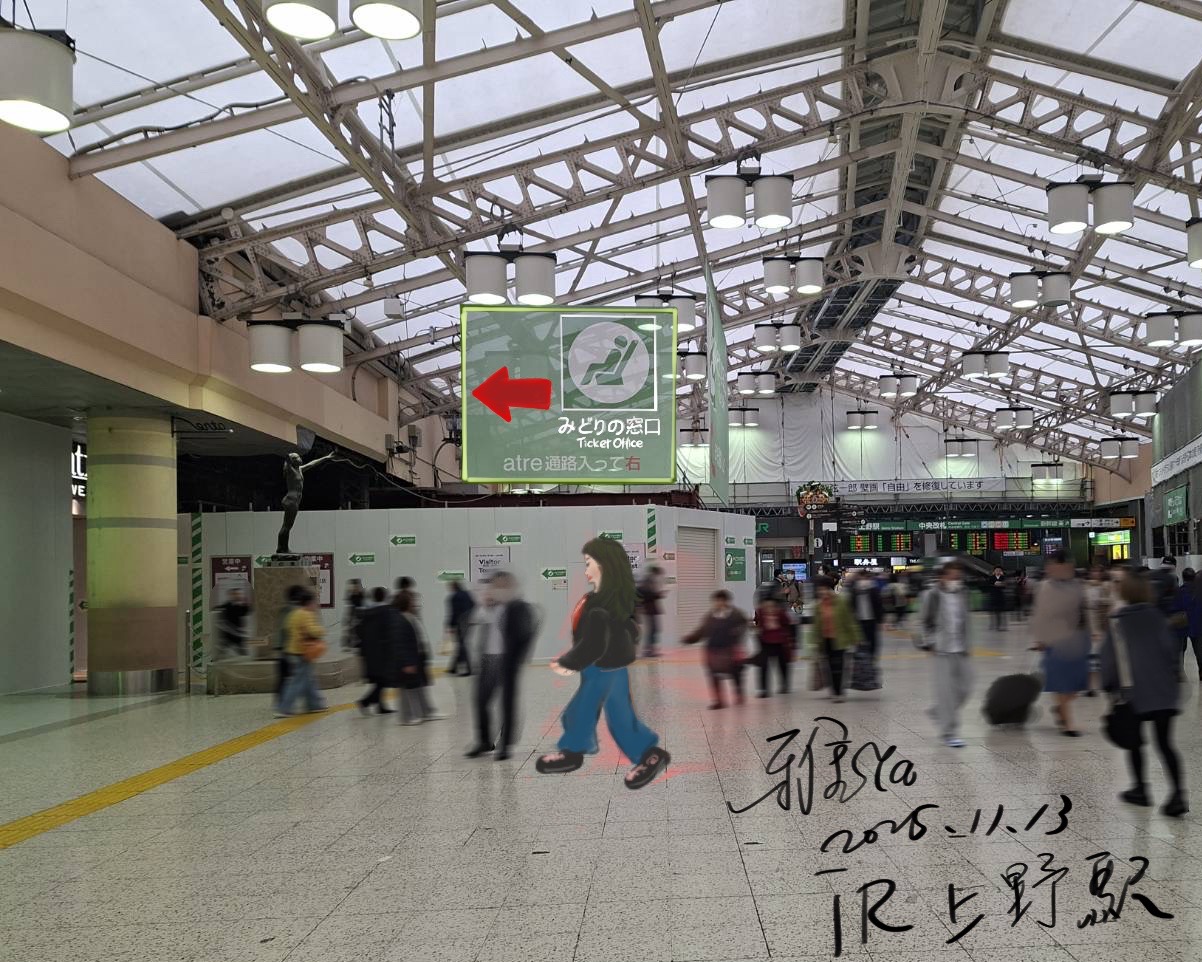 因為如此,沒認真聽他們的對話,一些回憶游上腦海:這裡是JR上野的綠色窗口啊,以往前往東北,都是在上野站出發的。輕井澤、那須塩原、仙台、青森、札幌。與JR上野站的情感,其實頗深。