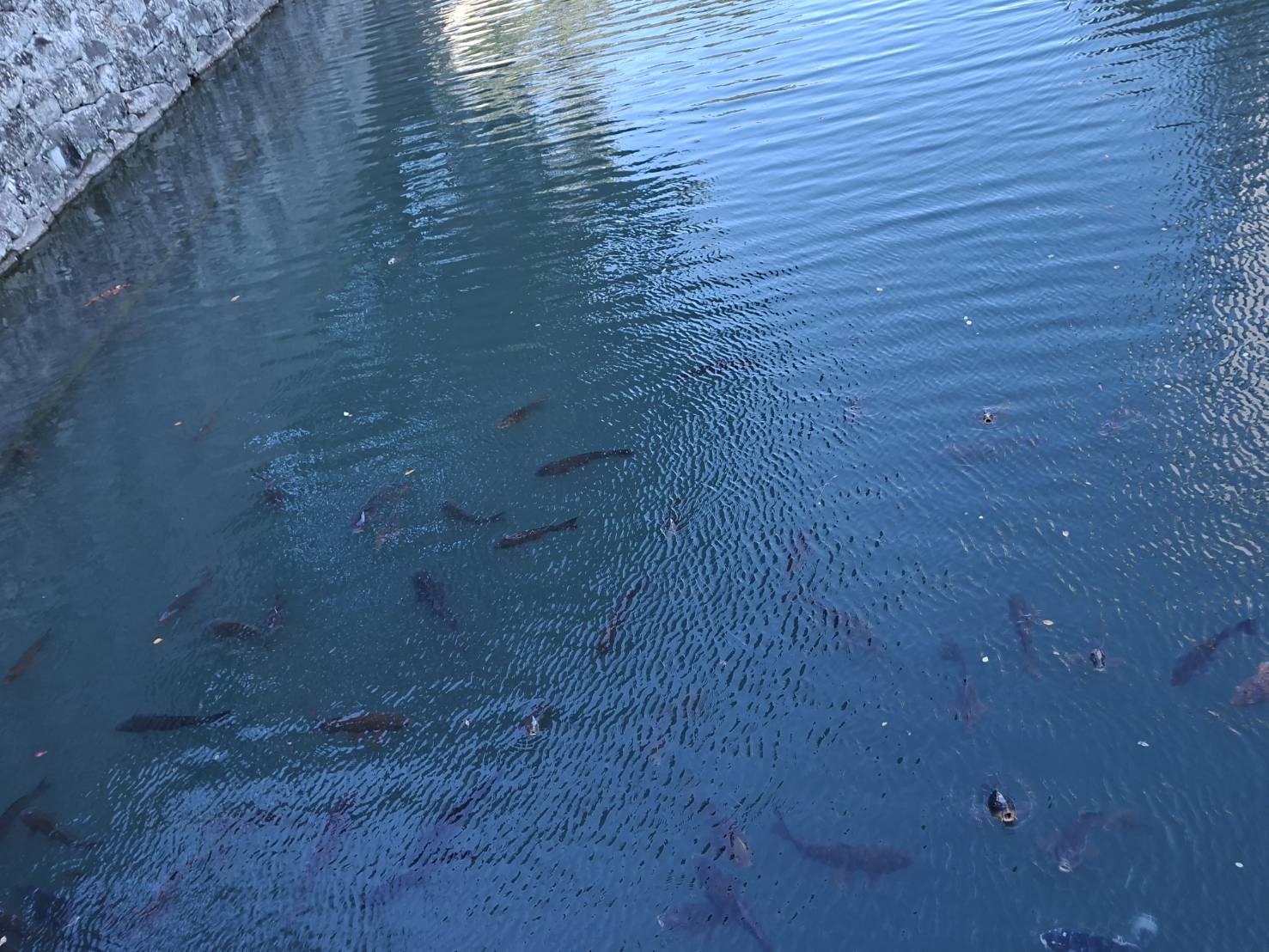 待在藍與白交織出的畫布裡,陪了河裡的肥魚們好一會兒,準備正式踏入駿府城時。