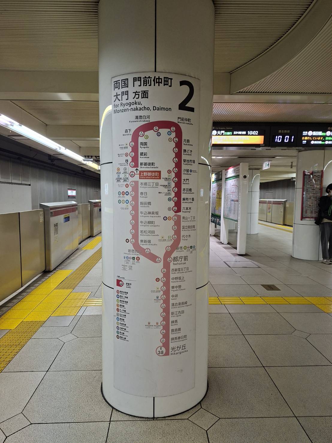 挑了都營大江戶線,刻意不搭東京Metro。之前搭過這條線感覺良好,不壅擠,安靜,乾淨。上野有站,不需轉乘。