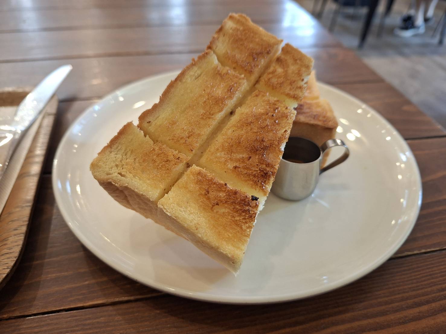 對著桌上,熱咖啡旁的烤奶油厚片上頭,淋下絲絲蜂蜜,更好。
