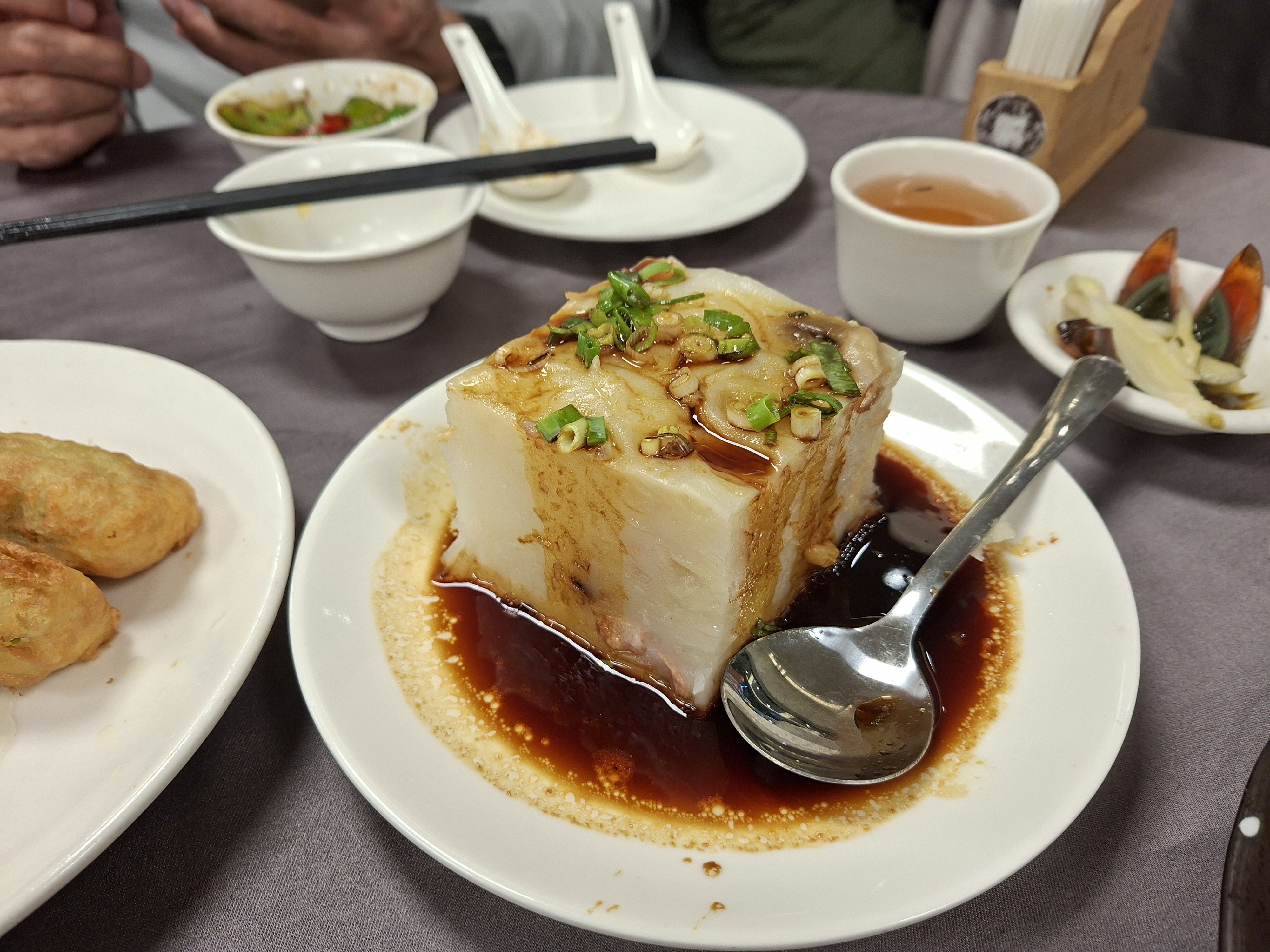 又幾秒,我筷子才過去,像塊大豆腐狀的蘿蔔糕。