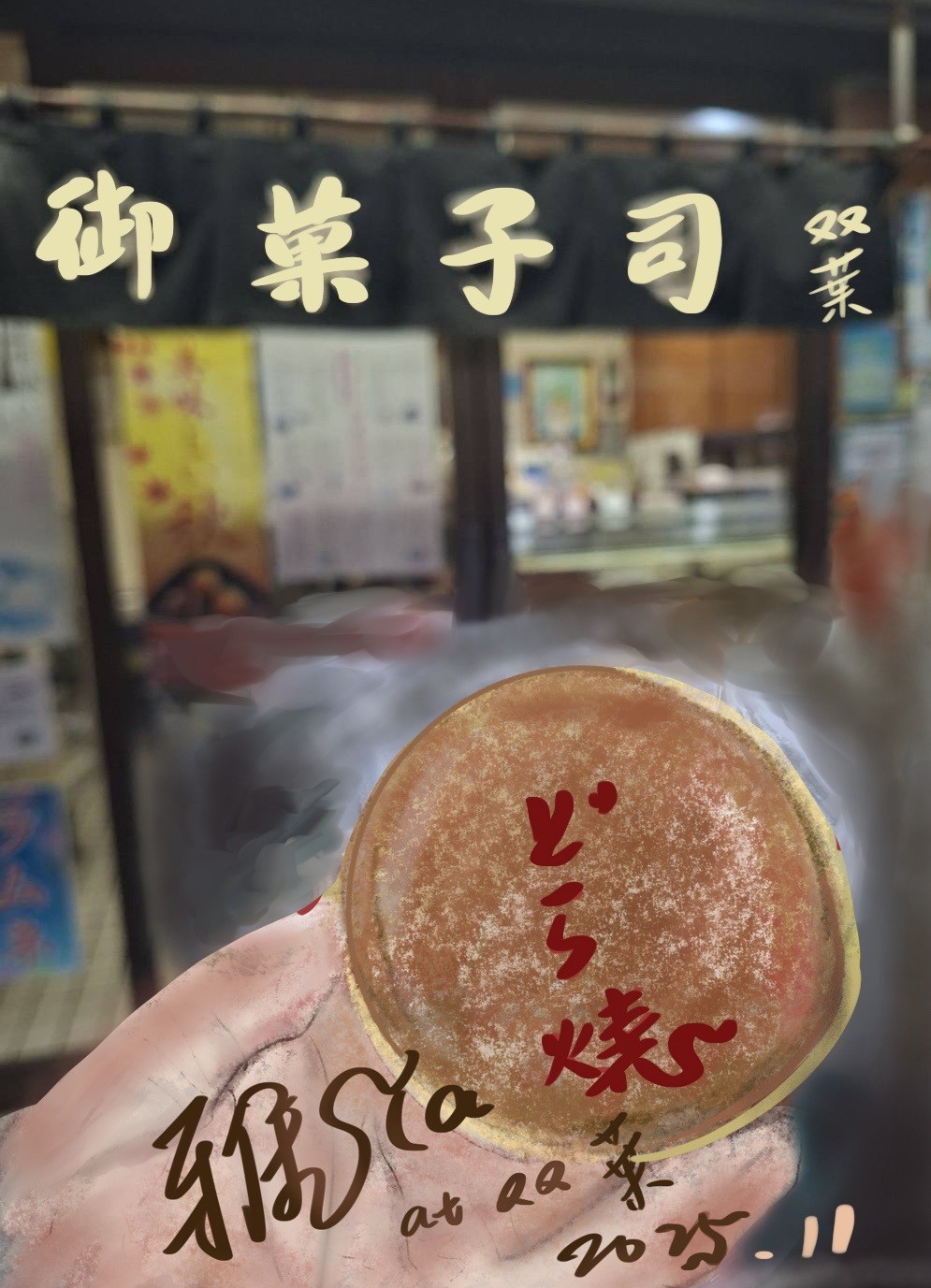 又站在一個十字,這回比包包裡那喝了三分之二的爽健美茶快:はい、このどら焼、お願いします。