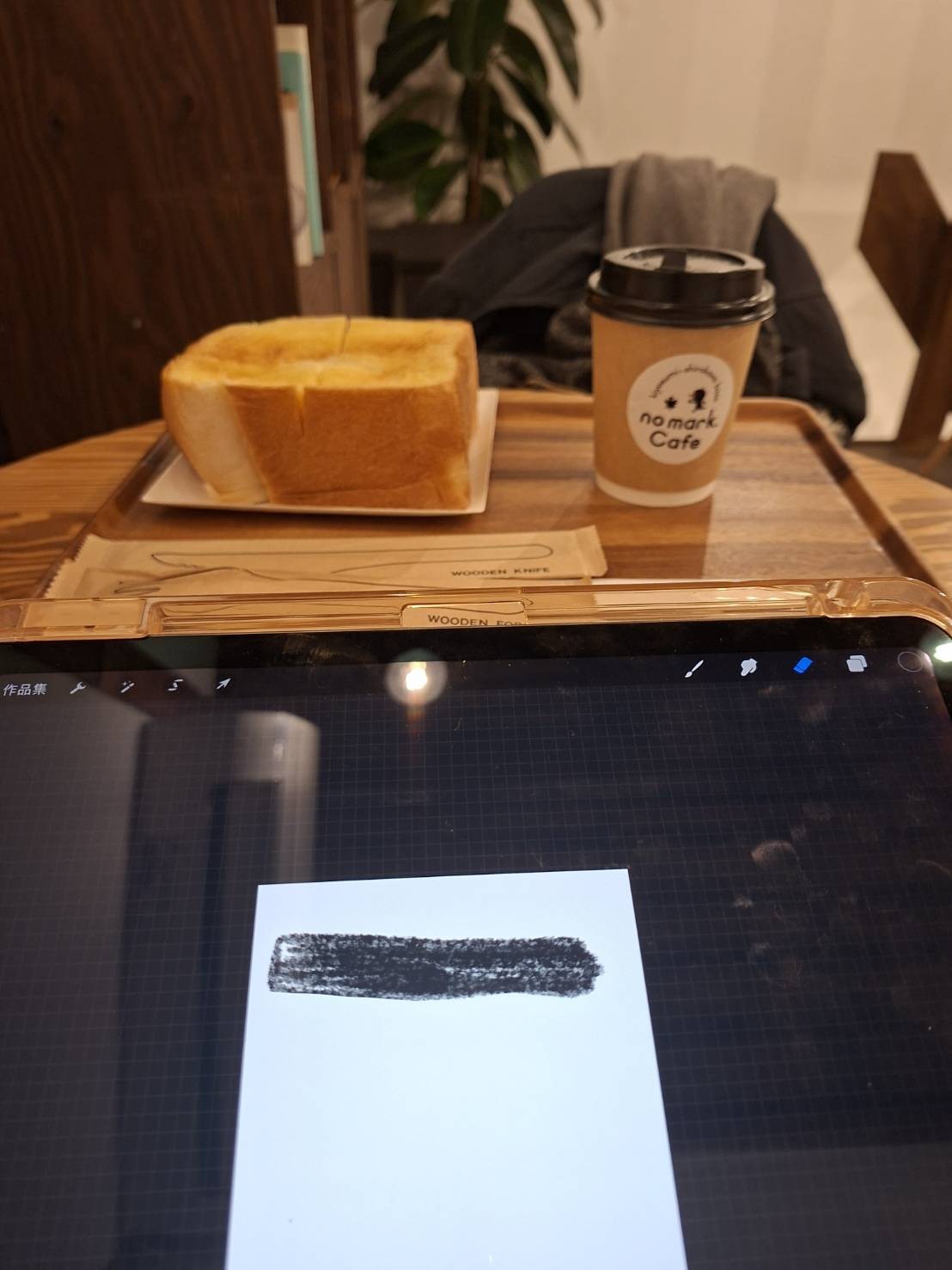畫好銅鑼燒外型,基本上色,餐點也送來了。不只如此,老闆還送來了一個好消息:今天營業時間改到六點,請慢慢享用。