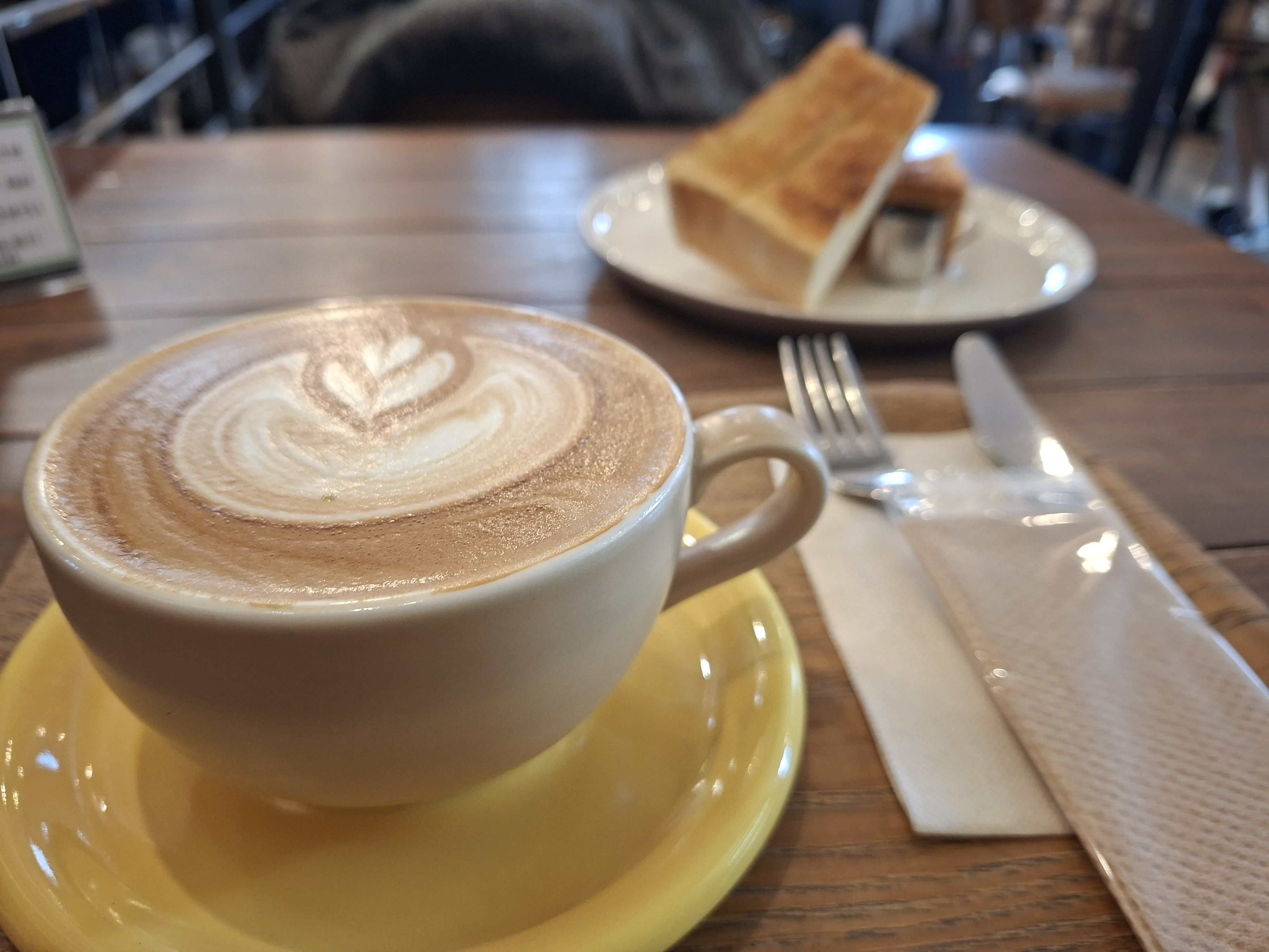 一杯覆蓋著奶泡細致的熱拿鐵